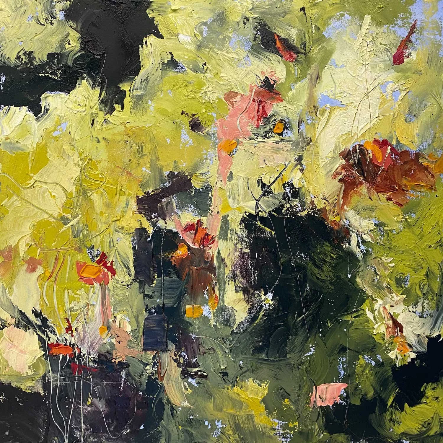 Polly Dutton endeavours to capture the elements; sun, wind, rain and the effect these have in the landscape. The mark making is spontaneous and she uses various mediums to create work that is vibrant, energetic and atmospheric. She enjoys using a strong, recurring motif that abstracts the images into rhythmical patterns of colour, contrast and tone.